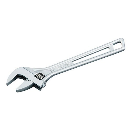目盛り付のモンキーレンチです。口径部をウォームで調整することで、数種類のボルト・ナットを回すことが出来る利用範囲の広い工具です。ウォーム部は操作性向上のため、くぼみを設けています。 |