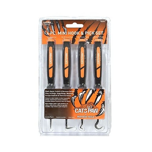 自動車や電気工事など狭い場所での作業に適しています。金属への印付け、割ピン、Oリング、スナップリング、ワッシャーの取り付けと取り外し、ガスケットの削り取りとホースの取り外しを行います。 |