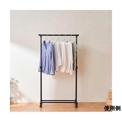 ブラック塗装仕上げでインテリアに馴染みやすいパイプハンガー。安定感抜群で、たくさん掛けられます。ハンガー下のスペースは収納物やボックスなどが置け、空間を有効活用できます。無段階調節で好きな高さに。 |