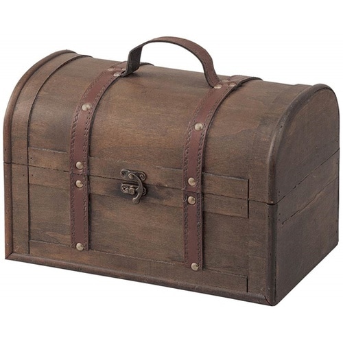 装飾用のトランク型の木箱。ブラウンの木箱に、花を入れると、花が映えて春らしい店舗ディスプレイに。 |