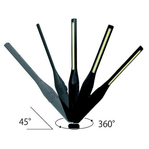 先端が11mmと細く、狭い隙間でも照らせます。明るさはダイヤル式で無段階調整が可能です。ボールジョイントで傾斜は45°、回転は360°の調整が可能です。 |