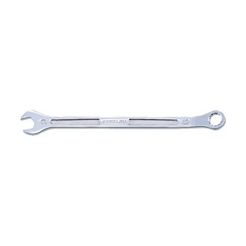 鍛造品で強いです。JIS規格品に比べ長く、スパナ部・めがね部ともに同じ厚さです。めがね柄部の曲がり角度15°です。狭い所でのダブルナットの締め付けなど。