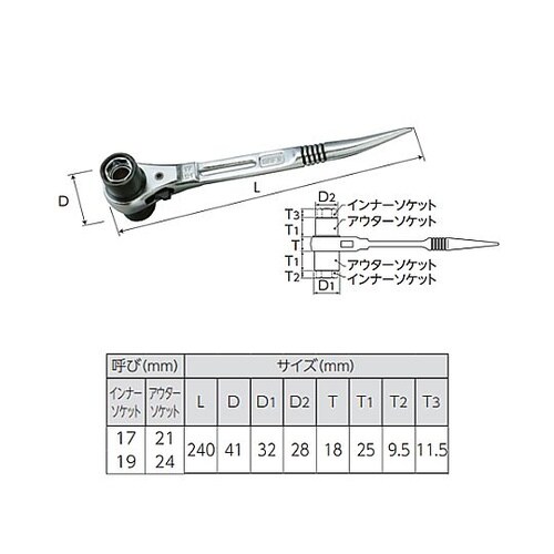 17x19−21x24 4サイズラチェットレンチ(ショート) EA602DL−13 EA602DL−13 1本