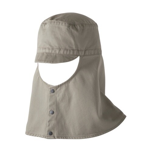 溶接作業の火花から顔を保護する綿100%の溶接帽子。通気性・吸水性に優れた高品質綿100%をワンウォッシュし、さらに肌触り・風合いのよい仕上げてとしたシリーズ。 |