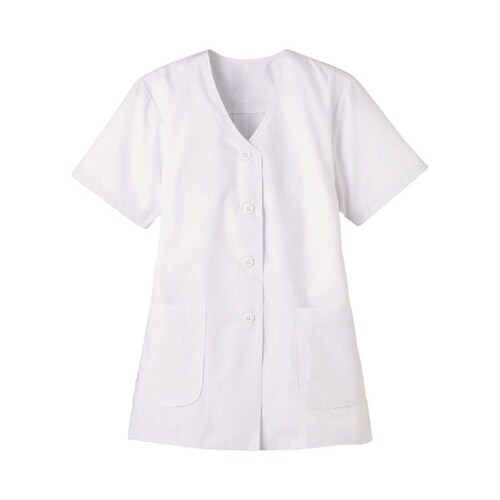 襟なし/半袖 女性用調理衣 ホワイト L FA332 FA332 1枚