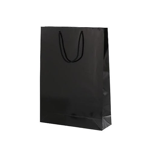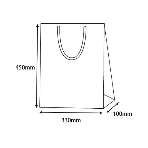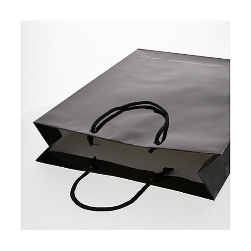 サイズ(幅×マチ×高さ)mm:330×100×450 | 材質:本体・コート紙(表面グロスPP貼り)、手紐・ポリエステル | 色:黒 | 厚み(g・m…