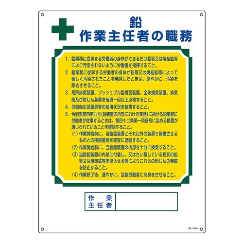 作業主任者職務標識 鉛作業主任者 職−512A 600×450mm エンビ 049912 049912 1枚