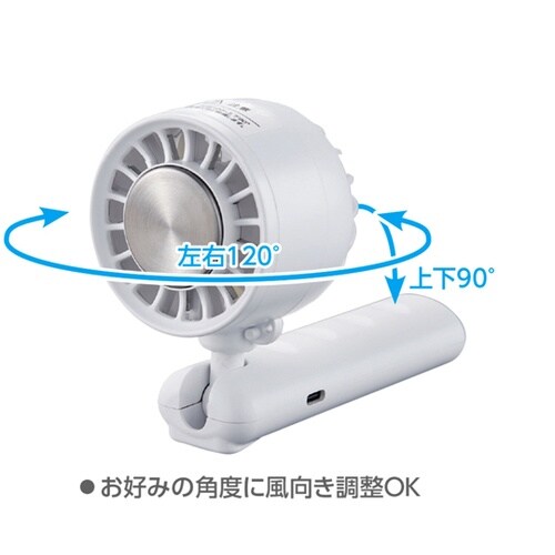 ペルチェ冷却プレート搭載で、瞬時に冷却し快適な涼しさを提供します。左右120度、上下90度の角度調整が可能で、好みの方向に風を送れます。 |