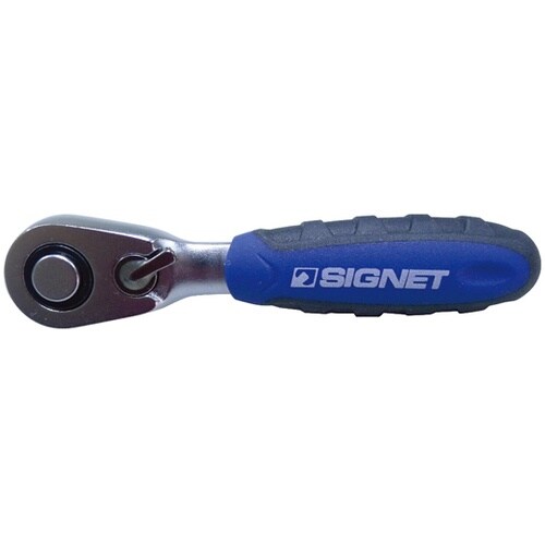 全長89ミリのコンパクトラチェットです。ギア数は60ギアと細かく、狭い場所の作業に適しています。手にフィットするグリップ付きです。 |