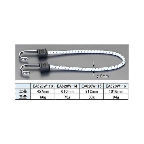 耐候性があり、腐食にも優れた抵抗力があります。ダブルフックで表面の傷つきを防止します。編みゴムコードコードは50%以上伸ばさないで下さい。 |