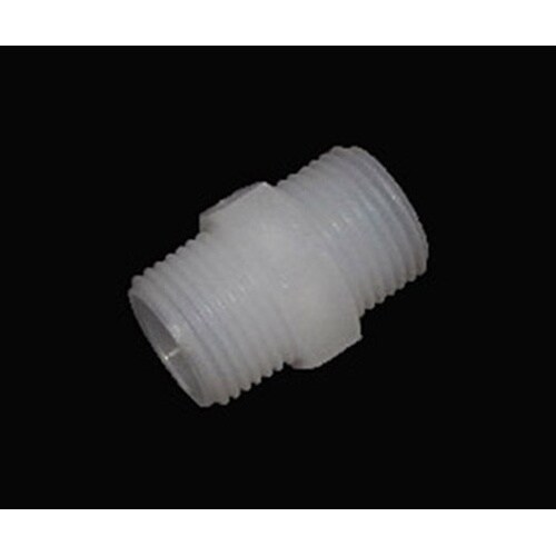 Rオスネジの同径ニップルです。オールkynar(ポリフッ化ビニリデン:PVDF)製です。使用温度−20ー+120℃。