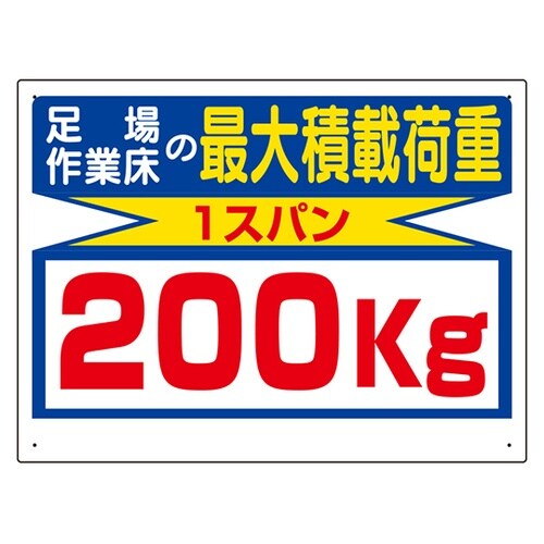 サイズ:450×600×1mm厚 | 材質:エコユニボード | 標識:足場作業床の最大積載荷重1スパン200kg | 単位:1個