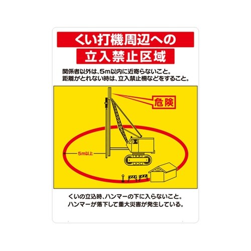 サイズ:1200×900 | 材質:鉄板 | 標識:くい打機周辺への立入禁止区域 | 単位:1個