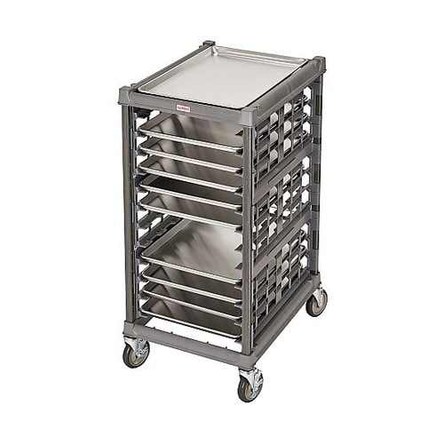 材質は鋼鉄のように頑丈な複合素材(コンポジット)採用。オーブンから直接収納できます。(177℃まで)プラスチックキャスター。 |