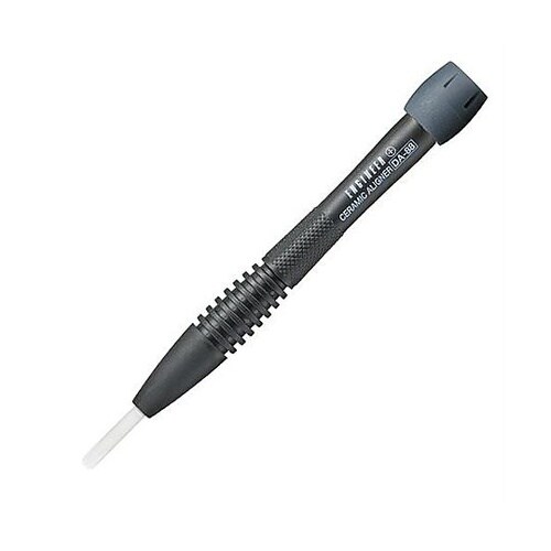 コンパクトなセラミック調整ドライバー。耐久性に優れたジルコニア系ファインセラミックビットを使用。ビットの先端と軸部とで2種類の調整が可能です。ローレット加工、回転キャップ付きで操作性が向上。 |