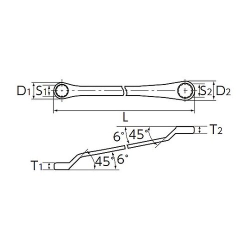 立ち上がり角は狭い場所でも使いやすい45°×6°です。オフセット高さと長さを抑え、狭い場所での使い勝手をよくすると同時に、ボルト、ナットに効率よく力を伝えます。 |