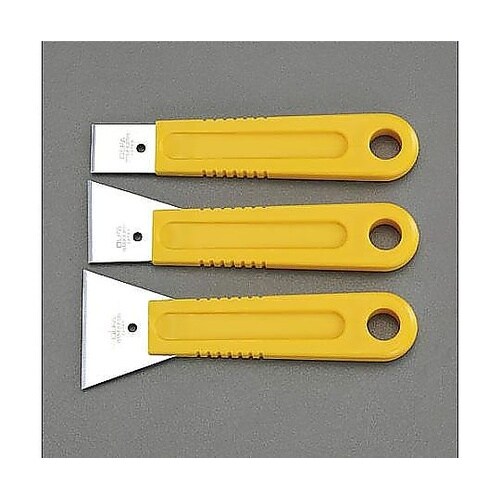 刃付けがしてあるので、切る作業にも使用できます。刃とグリップは丈夫な一体成型で、水洗いできます。はがす、削るなどの作業に丸ごと水洗いでき、下地に傷がつきにくいステンレス刃です。 |