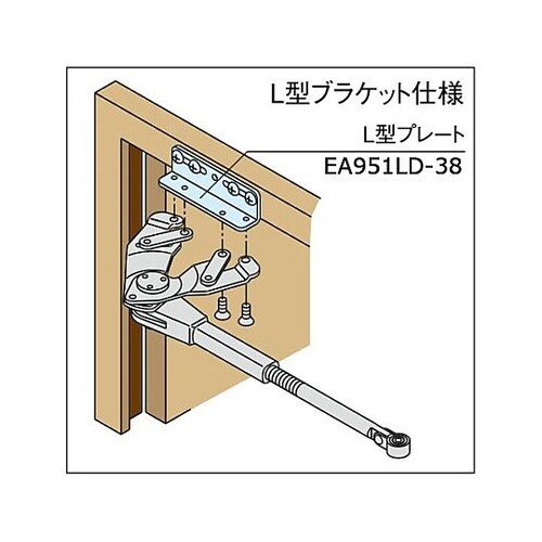 L型のブラケットで取りついているドアクローザーを交換する際は本品を使用します。 |