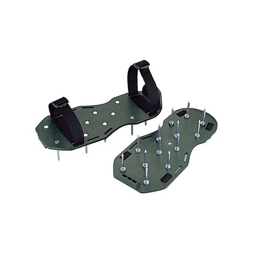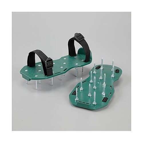 歩いて芝生に穴を開けることにより通気性が良くなり成長を促します。バンド式で靴にしっかり装着できます。本体は「かかと」付で靴のズレを抑えます。 |