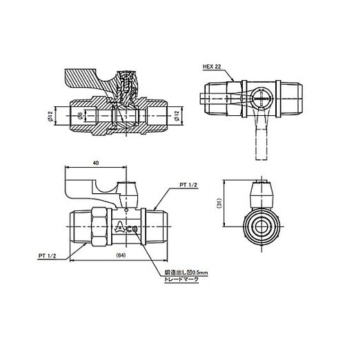 一次側・二次側共にテーパー(PT)外ネジの配管用バルブです。一般にはない外ネジによる配管が可能です。ハンドルの干渉も少なく取り付けられるので、新たな配管環境に対応できます。 |