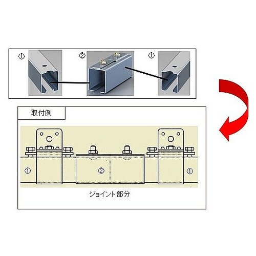 レールを接続し長尺レールを作ることができます。併用できる受金具は横受と天井受のみになり、ボックス受には使用できません。 |