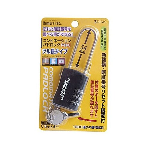 忘れた暗証番号を付属のリセットキーで調べることができます。スーツケース・バッグ、ロッカーや物置などの施錠に。 |