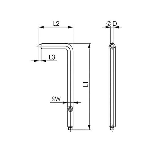 パイロットリセス付き低頭ボルト専用レンチ。 |