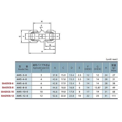 高圧・高温・低温に耐えられます。使用圧力はチューブ使用圧力に準拠する。真空ラインでも使用可能です。※プラスチックチューブ使用時は、インサートリングが別途必要となります。 |