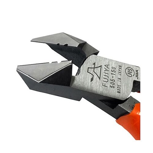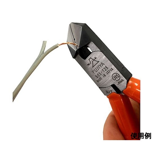 刃に角度がついている為、指が邪魔にならず切断作業がスムーズにできます。電気工事等でのビニール線やゴム線のストリップを、芯線にキズつけず簡単に行えます。 |