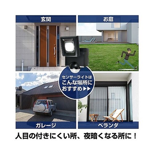 暗い時にセンサーが人を検知すると自動で点灯し、約10秒後に自動で消灯します。乾電池式なのでコンセントがない場所に設置でき、電気代もかかりません。 |