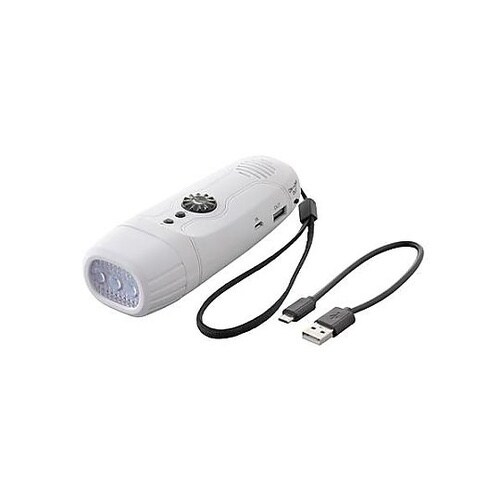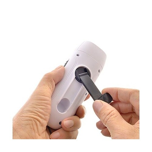 1台4役!スマートフォン充電にラジオ・サイレンと災害時に役立つ機能を搭載したLEDライト。手廻し充電(1分間)で、約10分間のライト点灯、または約10分間のラジオ稼働が可能。 |