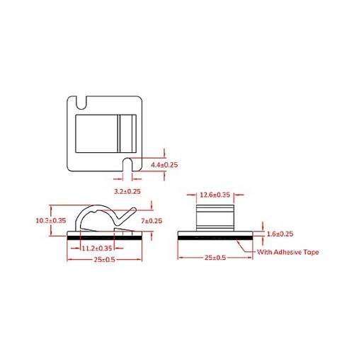 サイズ:11.2×7mm | ベースサイズ:25×25mm | 高さ:10.3mm | 材質:ナイロン66 | 入数:100個 | 単位:1袋