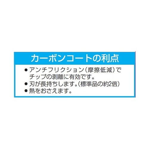aluカット(アルミニウムカット)+Carbonコーティングはコーティングによりダイヤモンド並の硬度で摩擦が小さく、切粉の目詰まりも防ぎます。 |