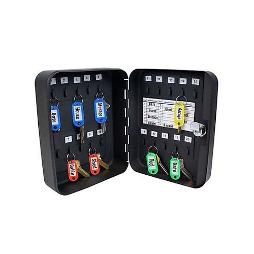 どんなインテリアにもマッチする美しいマットブラック仕上げ付属の識別ラベルにより、ボックス内のすべての鍵の位置を分類できます。 |