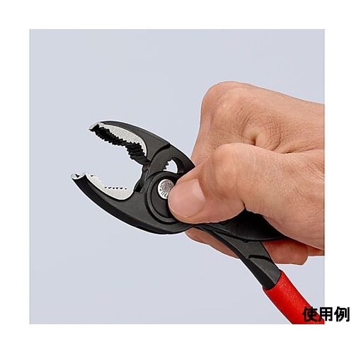 2ヶ所の掴み面によりボトル・ナットへ喰い込み力を加えても滑りにくい。先端部でナメたネジも回せます。 |