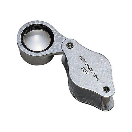 革ケース入りレンズの色収差を補正する、アクロマートレンズを使用した高倍率ルーペです。2枚のレンズを張り合わせたアクロマートレンズと凸レンズを組み合わせたレンズです。レンズに目を近づけてご使用ください。 |