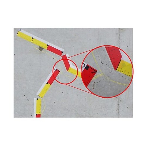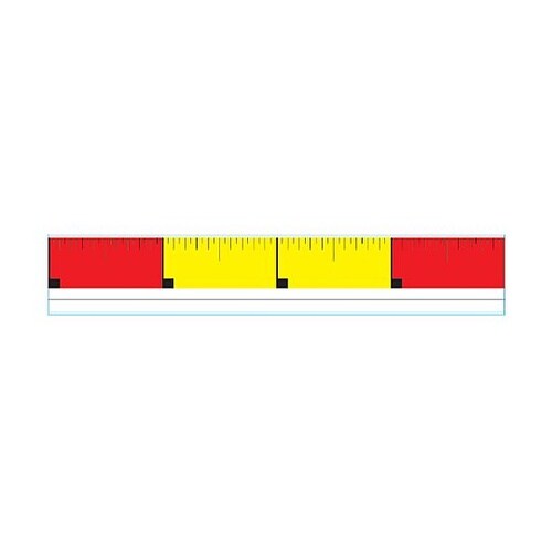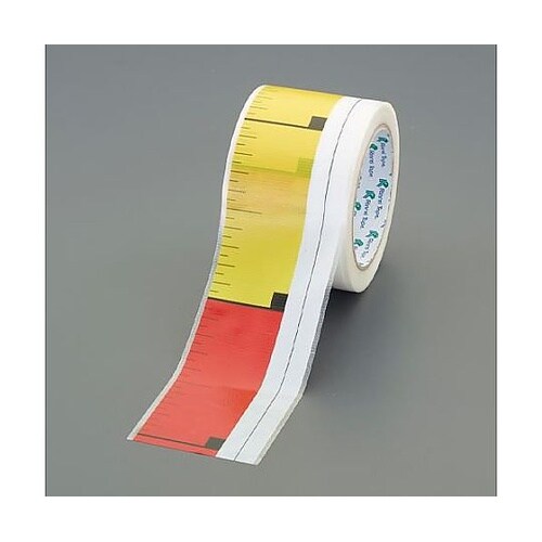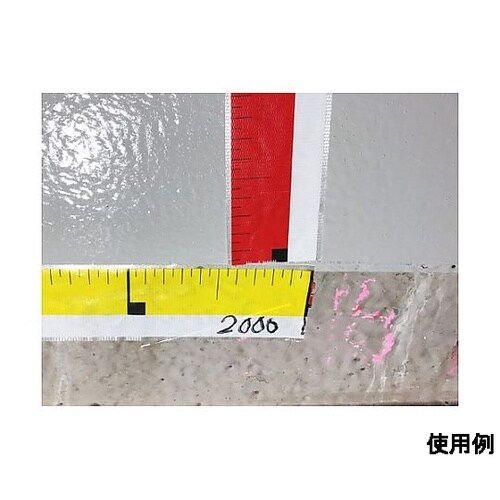 貼るだけ簡単!出来形測定の作業性を改善する目盛り付きテープ約5mm間隔の目盛り、約20cm毎の赤色・黄色の色分けによって、寸法が一目で分かります。 |