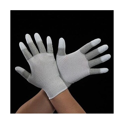 導電糸は、硫化銅複合繊維を採用しているため、作業中の摩擦・接触による帯電を防ぎます。より導電性を求められる指先部分は、導電糸のみで編んでいます。 |
