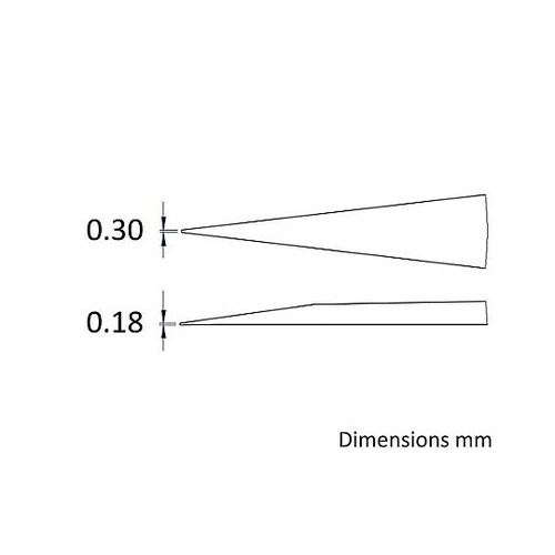 型番:3C | 形状:直・鋭 | 材質:純チタン(グレード1) | 先端幅:0.30mm | 先端厚:0.18mm | 開口幅:8.0mm | 全長:…