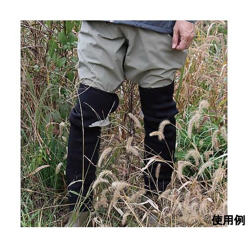 ヒザ部立体裁断とベルクロにより足にぴったりフィット。ウェーダーの上から着用する事によりヒザ・すね・ふくらはぎ等の穴の開き易い部分をしっかりガード。2mm厚CRスポンジ使用で保温力抜群。 |