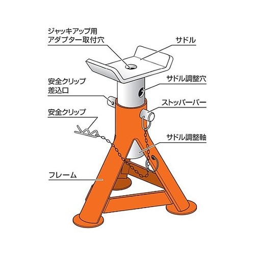 3段階調節(160mm、200mm、240mm)ローダウン車対応本体は視認性の高いオレンジ色で安全作業能力は2台使用での能力になります。 |