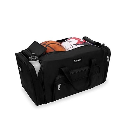 前と両サイドにジッパー式ポケット付持ち手はマジックテープで固定できます。メインスペースはダブルジッパー式です。 |