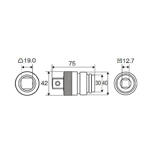 インパクトレンチの差込角と異なるソケットを接続できる変換アダプタースライドロック式で、ソケット類をワンタッチ着脱できます。Oリング・ピン付きインパクトレンチでご使用頂けます。 |