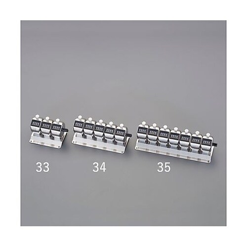数取器を連結しプレートに取り付けたタイプで、卓上に置いて使用できます。プレートに3.5mmの穴が4ヶ所あり、ネジで固定することもできます。 |