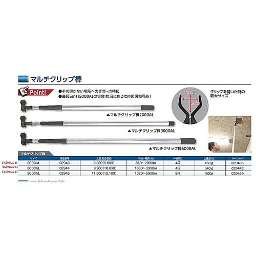 マーキング作業、ライトでの点検作業、風速計の延長などに使用できます。 |