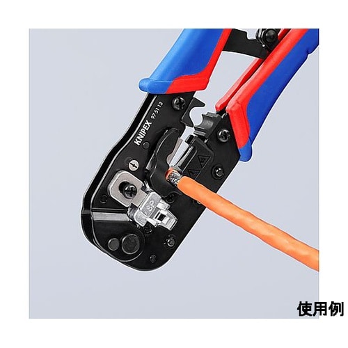 ケーブルの切断、皮むき、モジュラー端子の圧着が可能。 |
