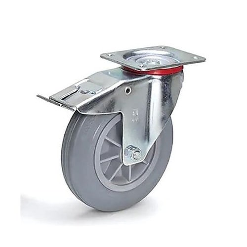 アズワン 200mm キャスター(自在金具/ゴムタイヤ/ブレーキ付 EA986CH−200 EA986CH−200 1個 A046-0933
