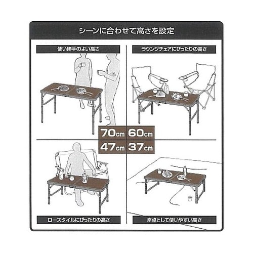 4ー6人用。使用シーンに合わせて高さを4段階に調節可能。 |