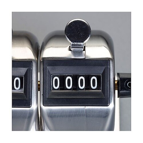 数取器を連結しプレートに取り付けたタイプで、卓上に置いて使用できます。プレートに3.5mmの穴が4ヶ所あり、ネジで固定することもできます。 |