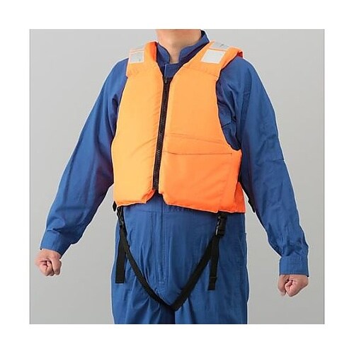 ベーシックタイプの救命胴衣です。股ベルトは体型に合わせて調整可能。小物の収納に適したポケット付(ポケット内部にはホイッスルが収納されています。 |